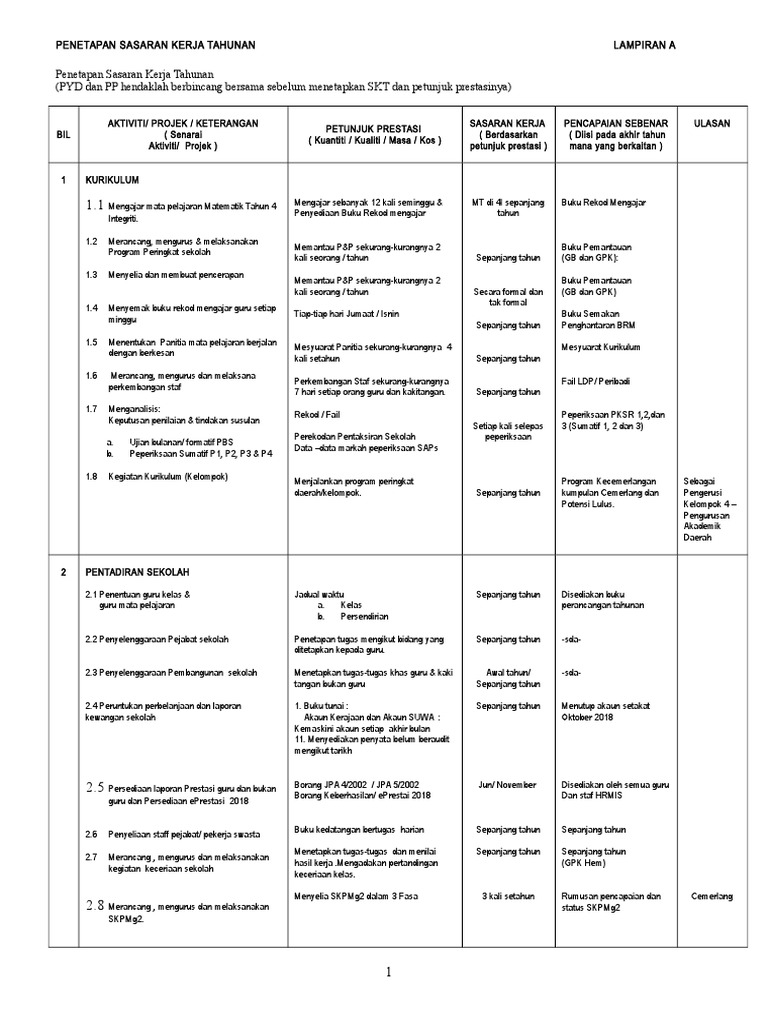 Sasaran Kerja Tahunan Guru Prasekolah Pdf