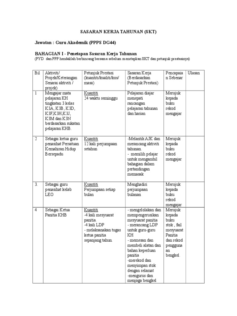 Contoh Sasaran Kerja Tahunan Skt Pdf